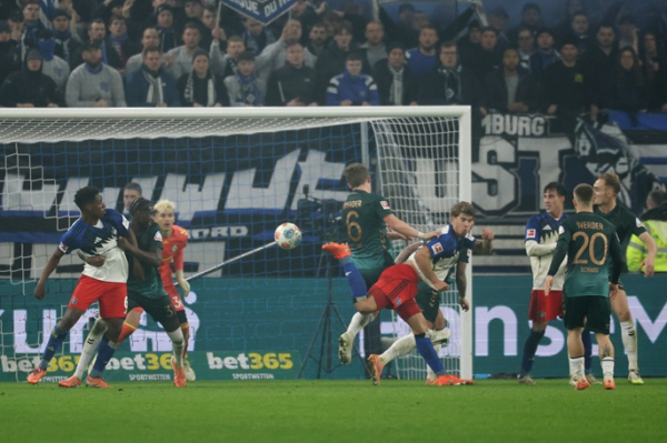 Substitute Yussuf Poulsen grabbed the winner with his first SV Hamburg goal after Luka Vušković's stunning scorpion kick in a thrilling 3-2 victory over Werder Bremen on Sunday.